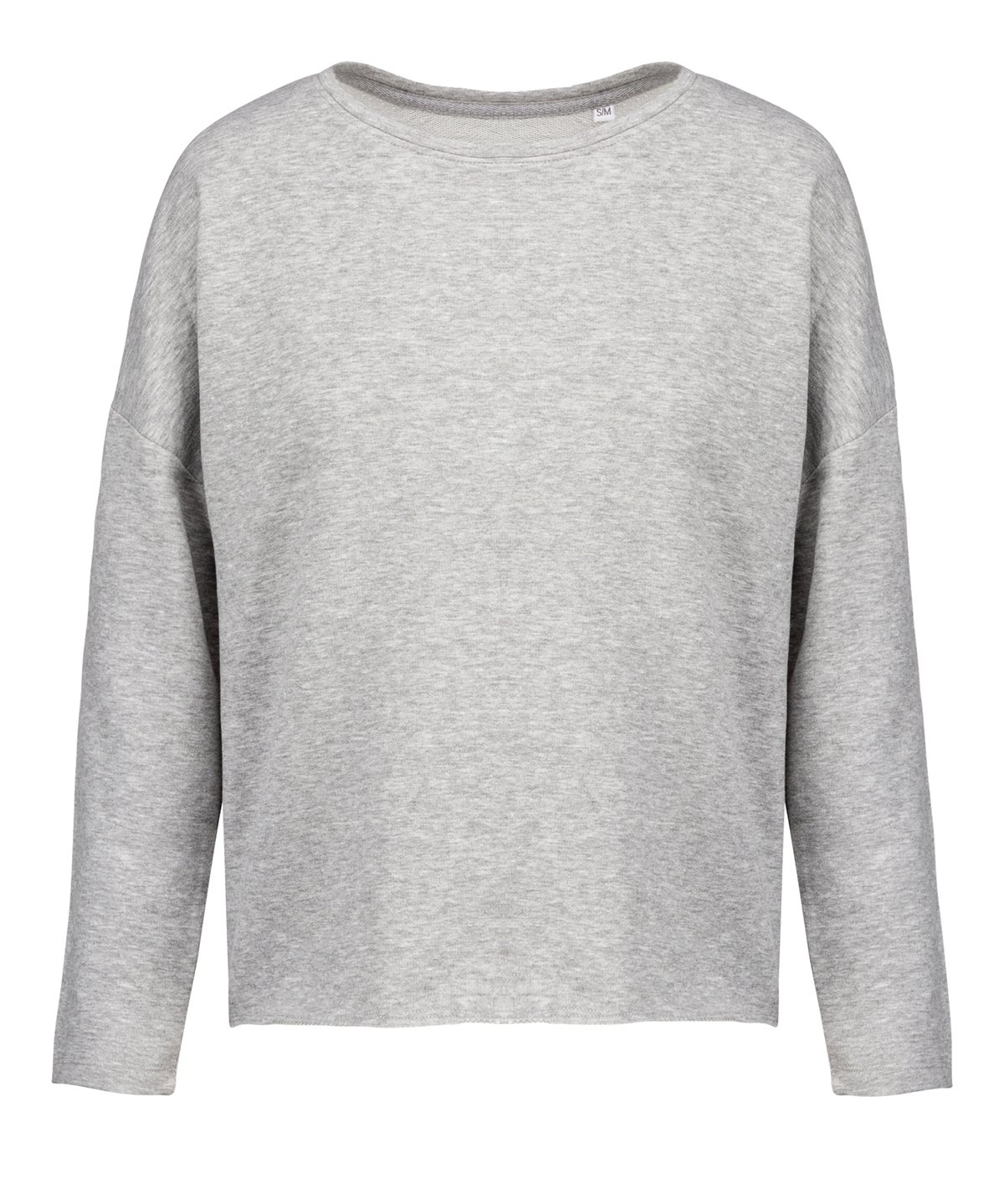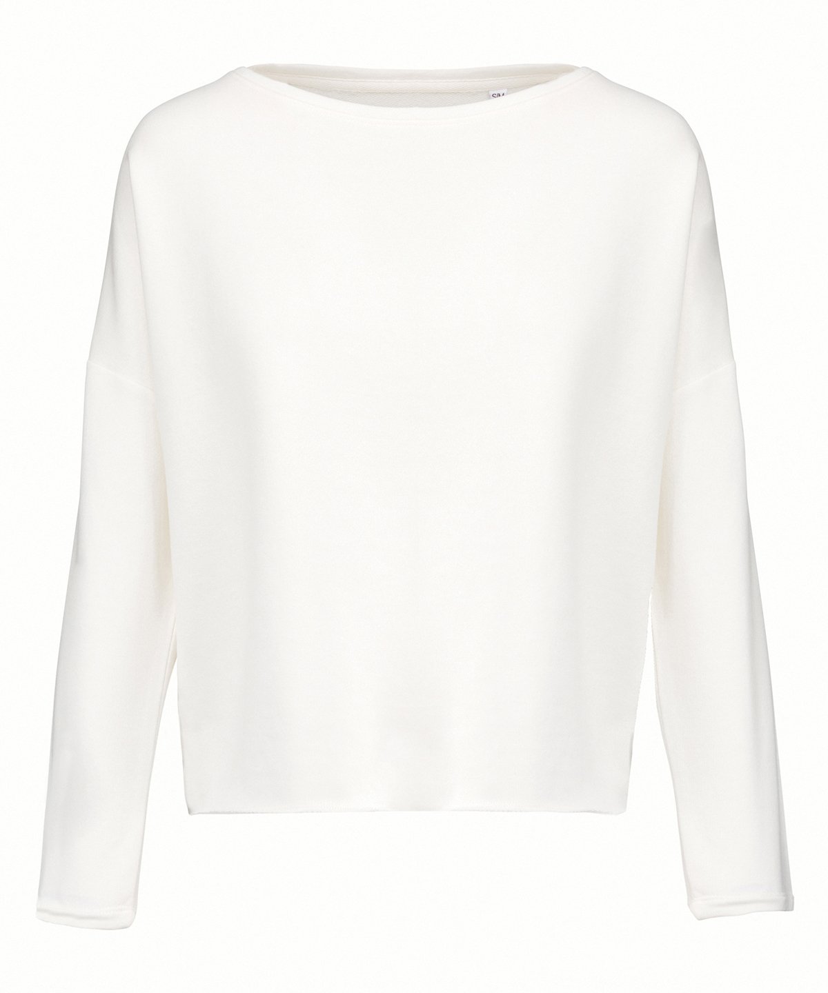 French terry. Ultra-soft fabric. Loose, relaxed fit with wide neck. Twill taped neck. Raw edge finish at hem. Twin-needle finishing at cuffs. No brand label at neck, only size tag for easy relabelling. BSCI certified. Oeko-Tex certified.