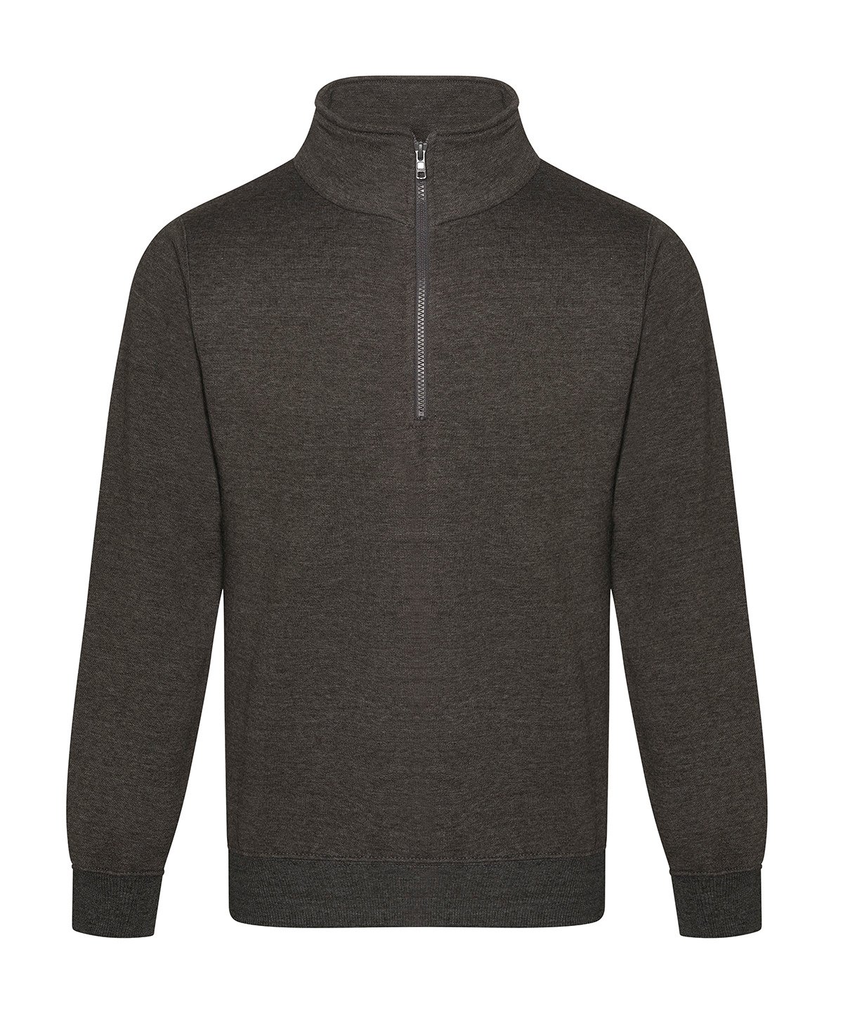 YKK zip and pull. Twin-needle stitching at arm, cuff and hem. 2×1 rib on cuff and hem. Heavier-weight fabric. Modern yet comfortable fit. Half-zip neck. Brushed inner fleece.