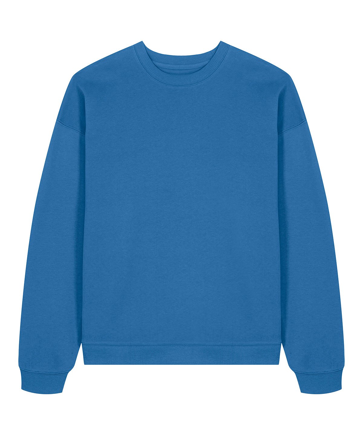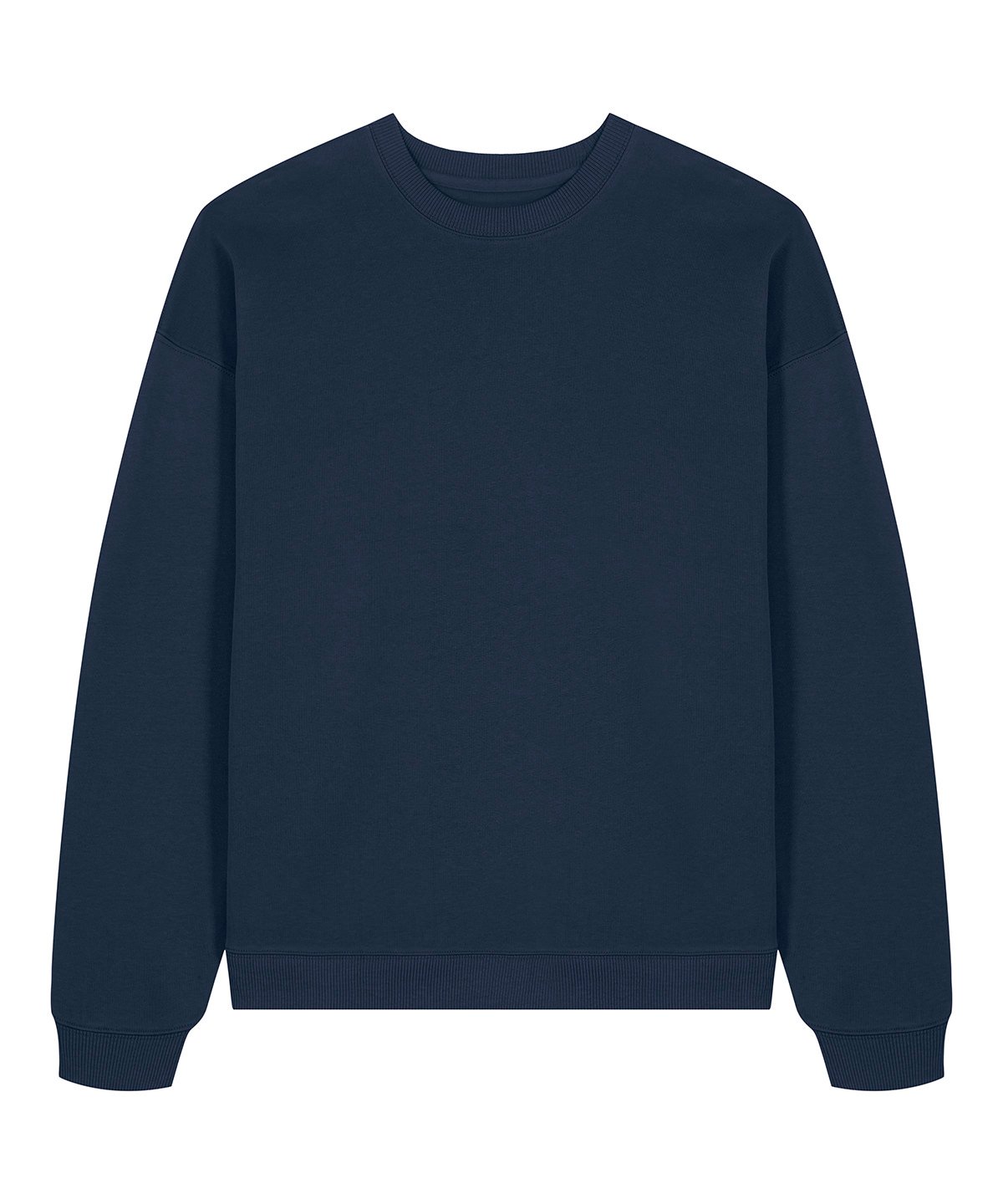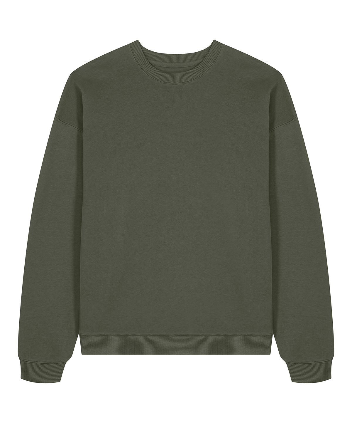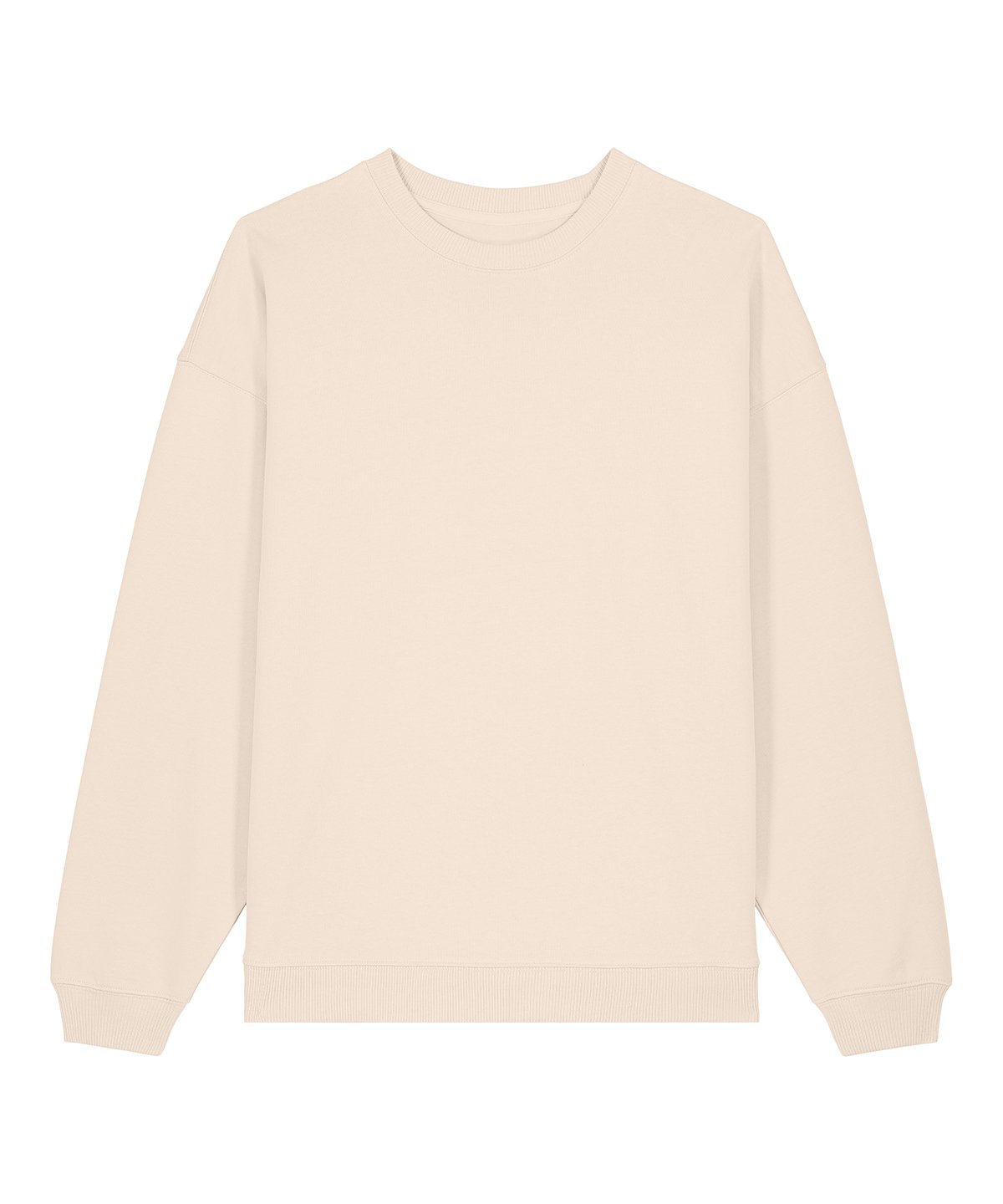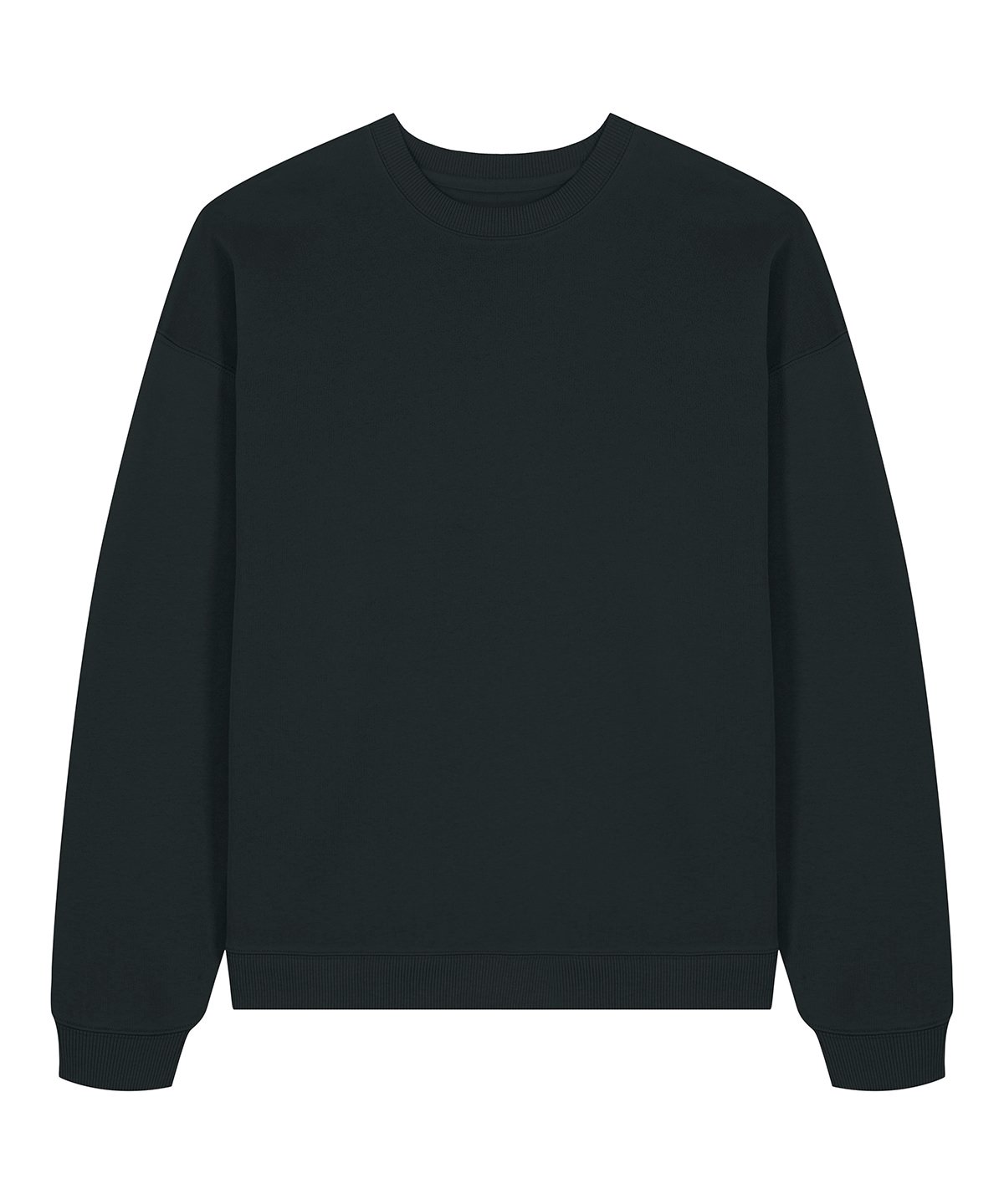 Set-in sleeves. 2×1 rib at collar, sleeve cuffs and bottom hem. Double-needle topstitches on all seams. Inside herringbone back neck tape. Self-fabric half moon at the back neck.