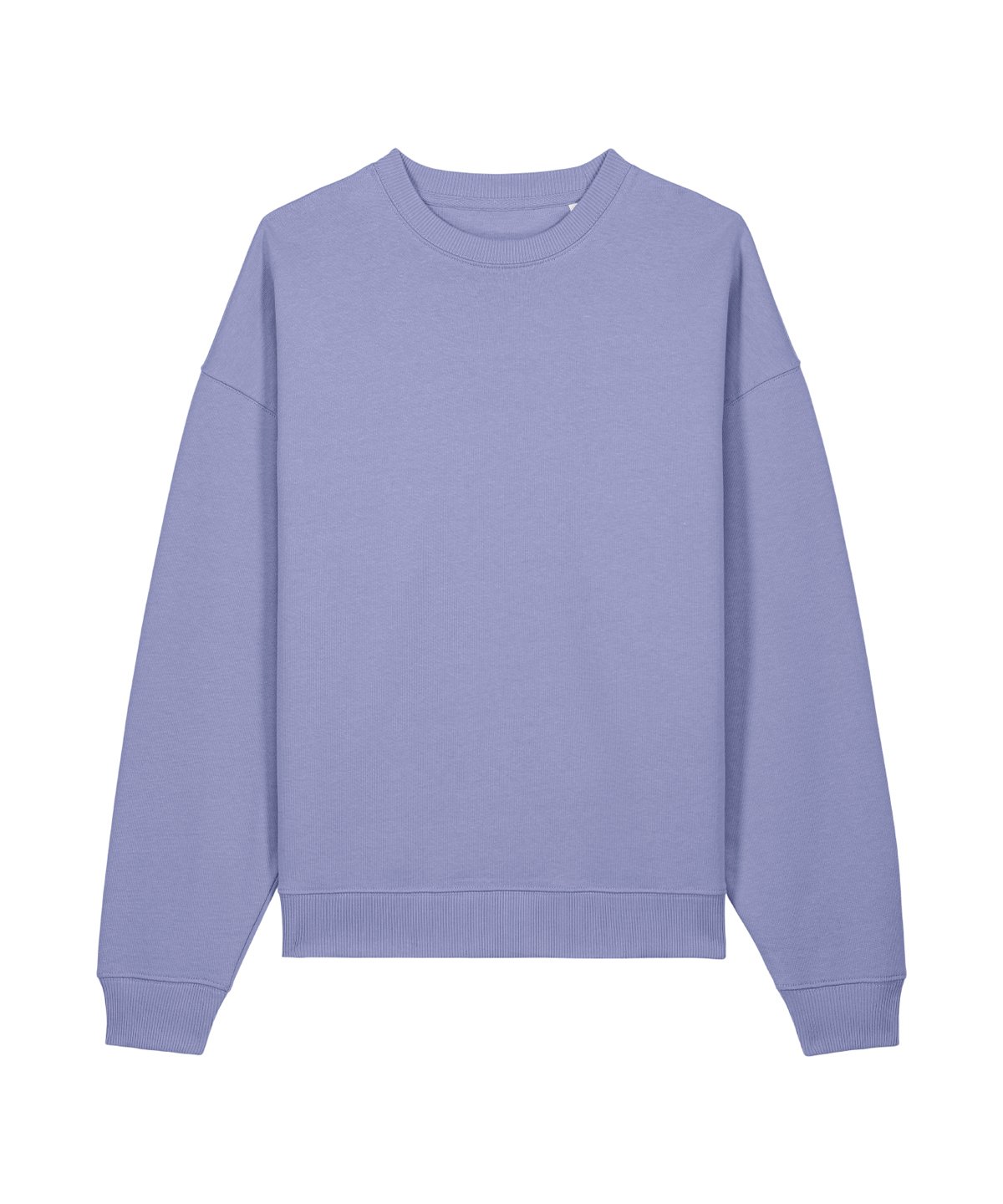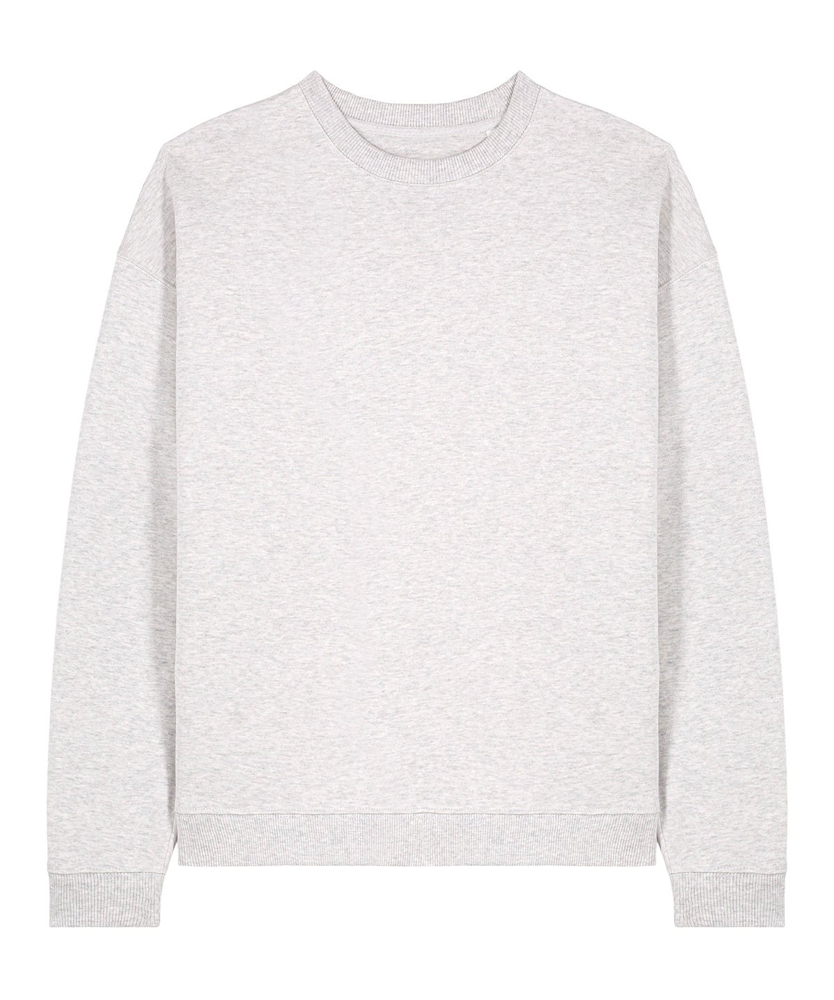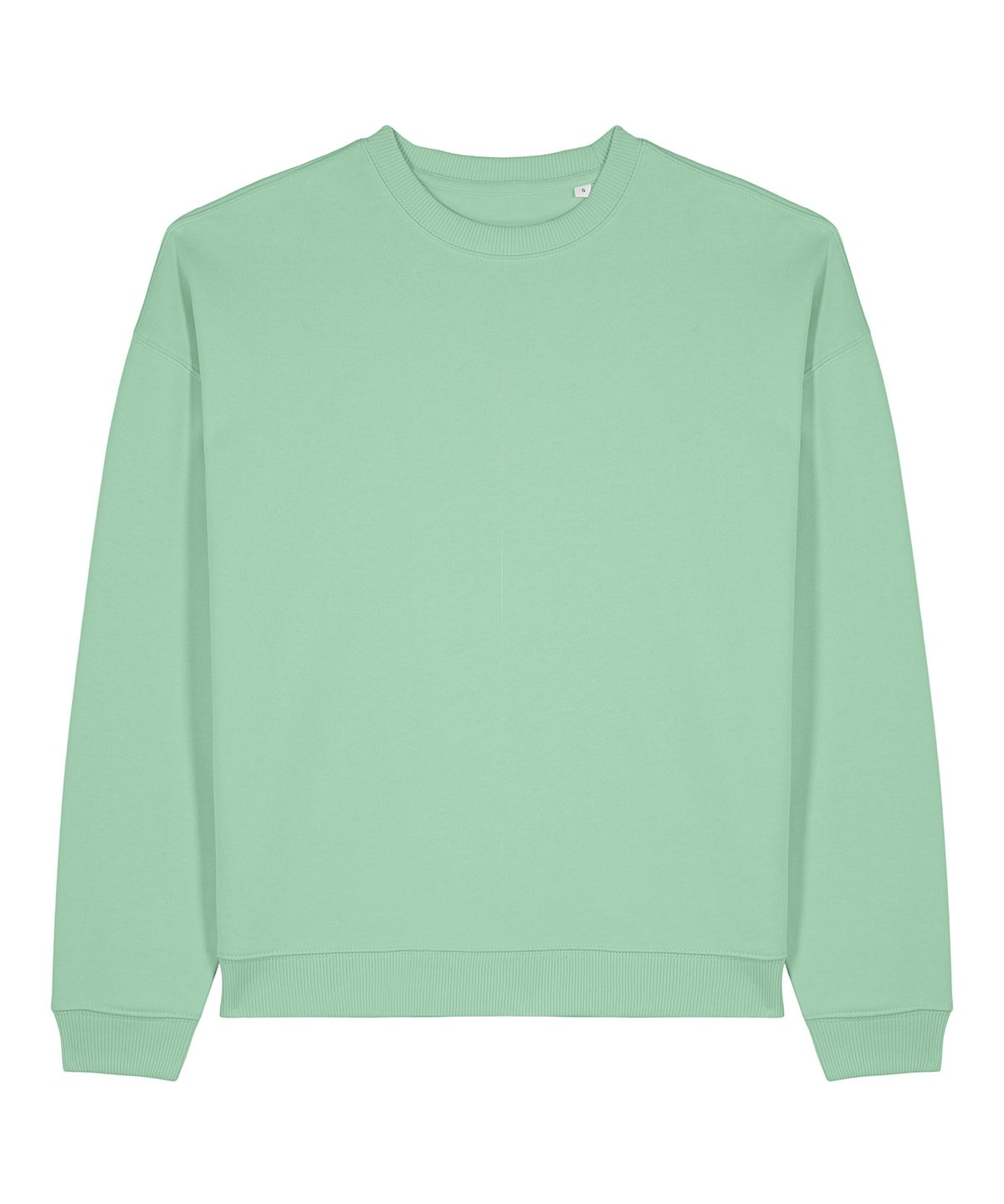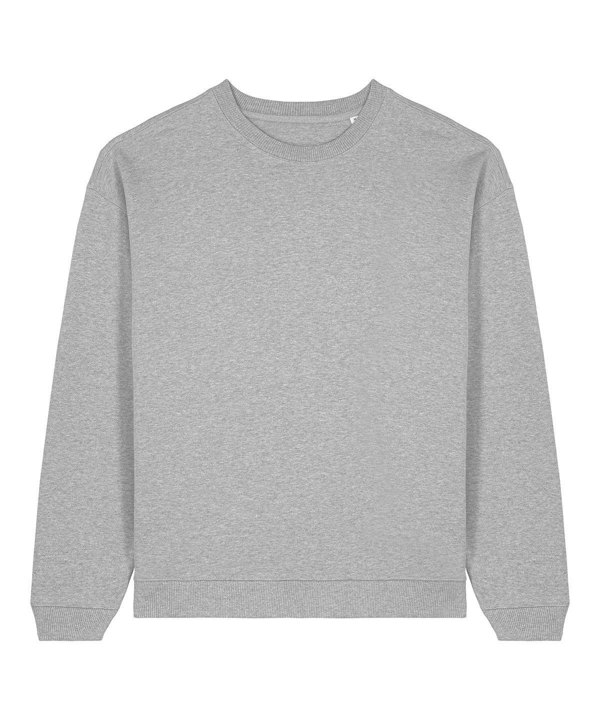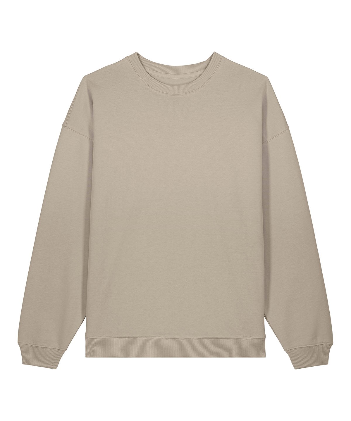 Set-in sleeves. 2×1 rib at collar, sleeve cuffs and bottom hem. Double-needle topstitches on all seams. Inside herringbone back neck tape. Self-fabric half moon at the back neck.