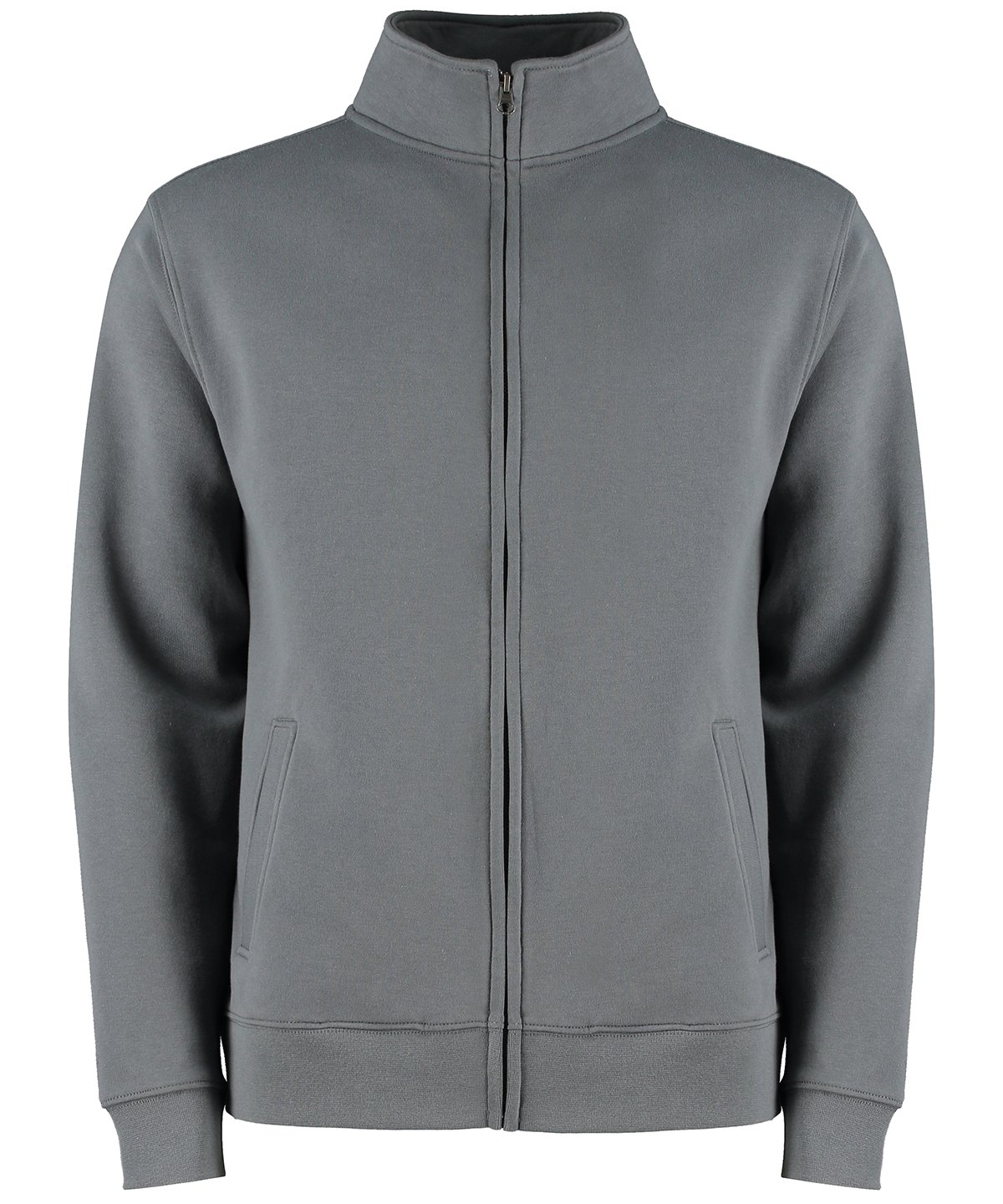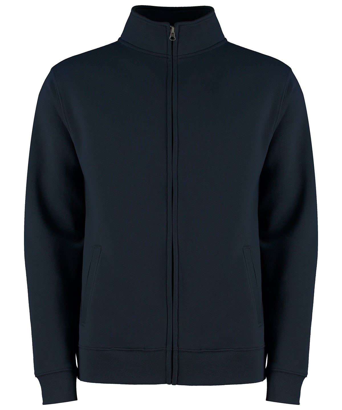 Double layered cadet collar. Self-fabric full needle rib double layered cuff and welt. Binding to back neck. Taped shoulder seams. Double stitched shoulders and armholes. Zirconium coloured metal zip and puller. Taped zip reverse. Double stitched welted side pockets with self-fabric pocket bags. Kustom Kit® tear-out back neck label.