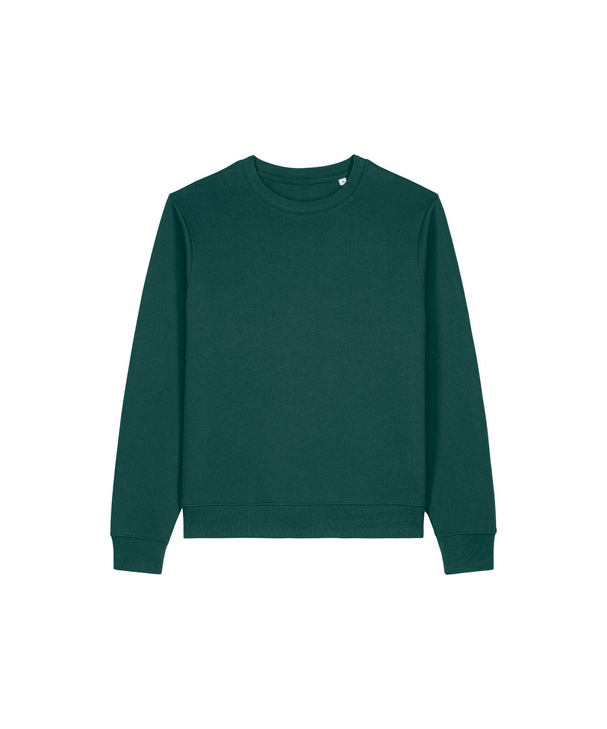Women’s recycled cotton crew neck sweatshirt. Set-in sleeves. 1×1 rib at collar, sleeve cuffs and hem. Twin-needle topstitching on the seams at the shoulders, armholes, sleeve cuffs and hem. Inside herringbone back neck tape. Self-fabric half-moon at the back neck. Contains 50% GRS-certified recycled cotton and 50% OCS-certified organic cotton, certified by Control Union CB-CUC-1393082.