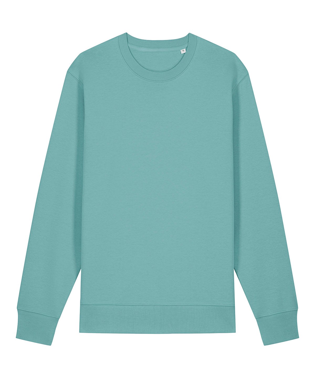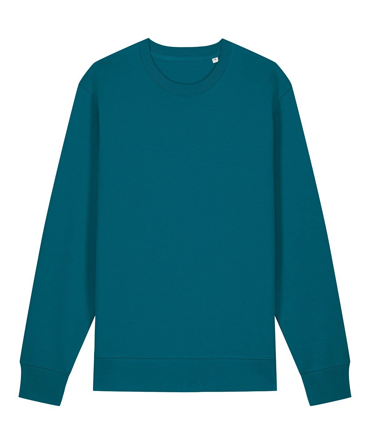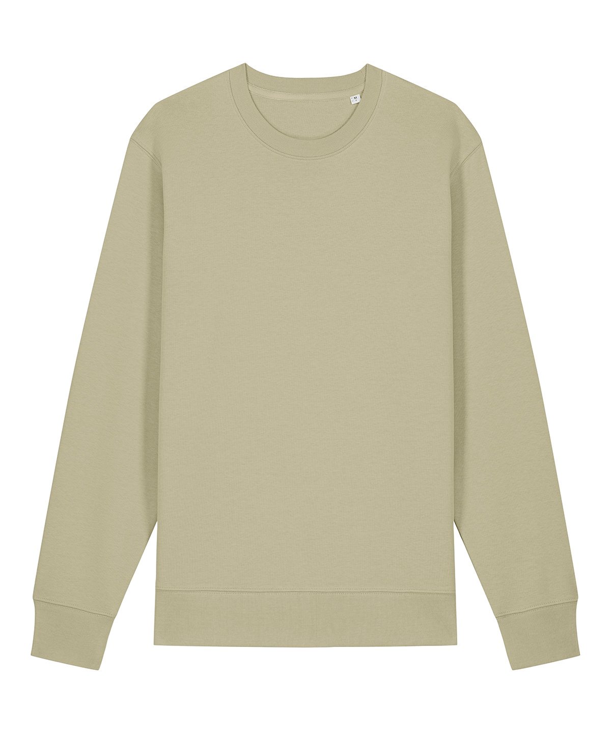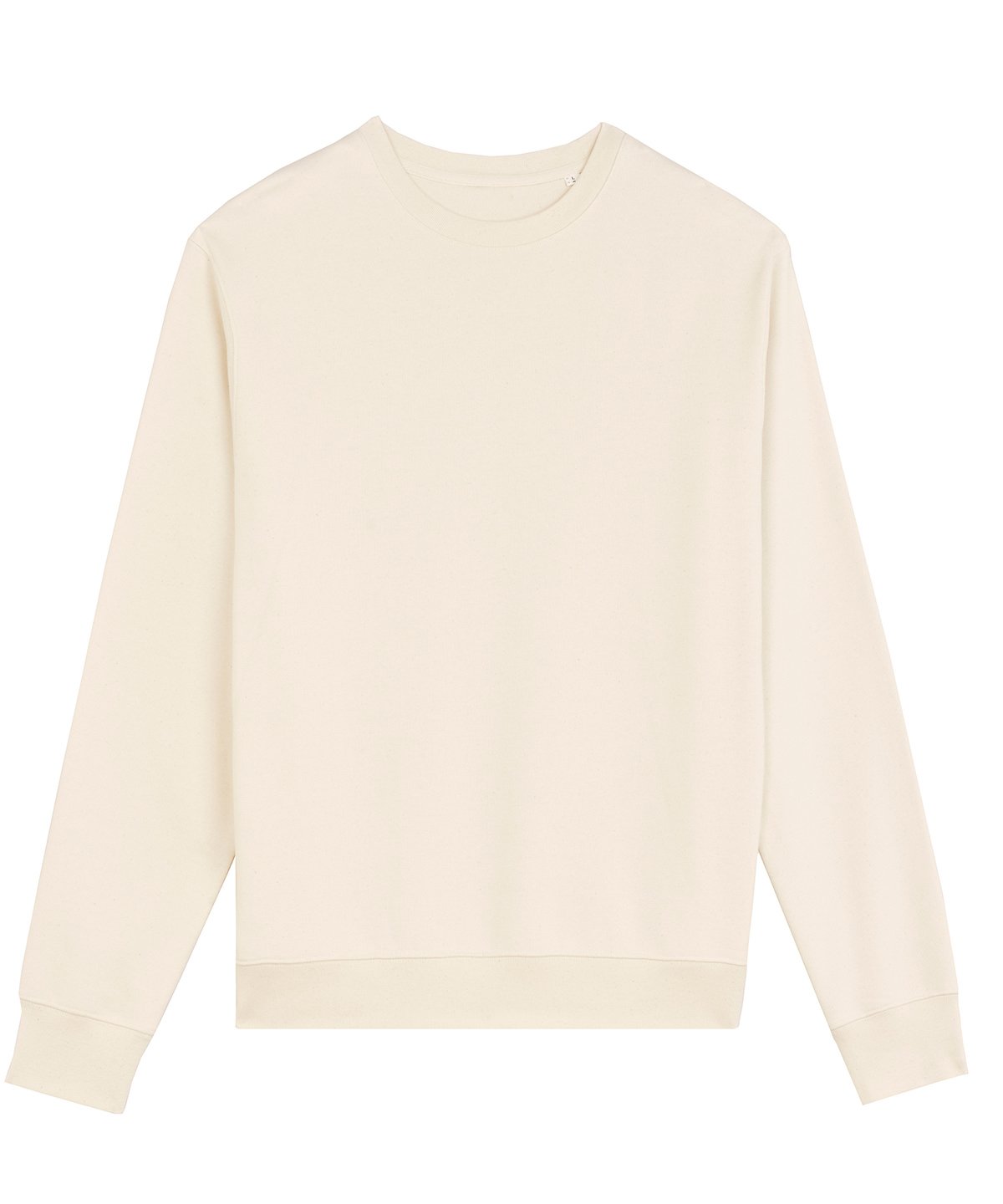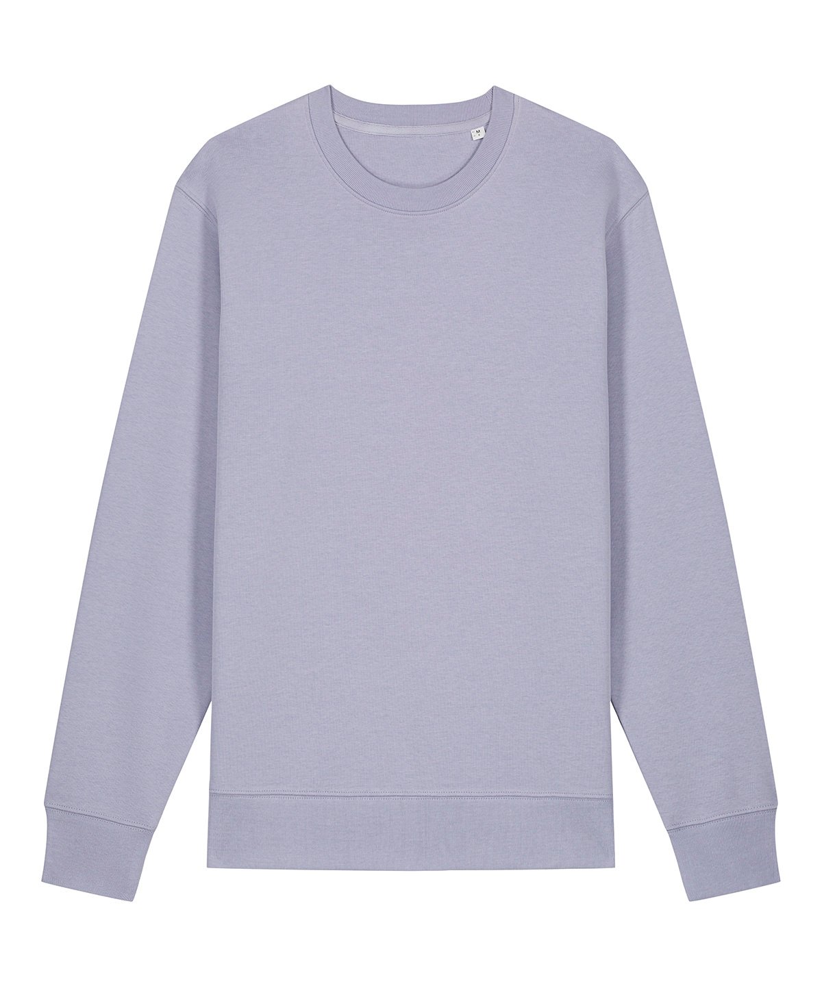 Unisex medium fit crew neck sweatshirt. Set-in sleeve. 1×1 rib at neck collar, sleeve hem and bottom hem. Inside herringbone back neck tape. Self-fabric half-moon at back neck. Single-needle topstitch at neck collar. Armhole, sleeve hem and bottom hem with twin-needle topstitch.