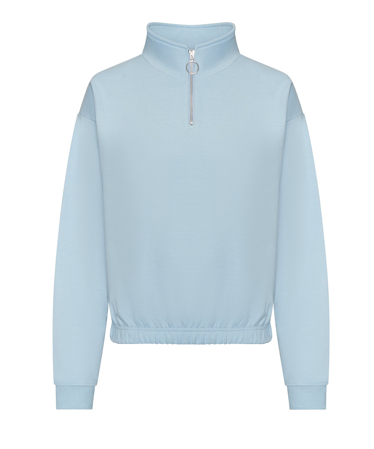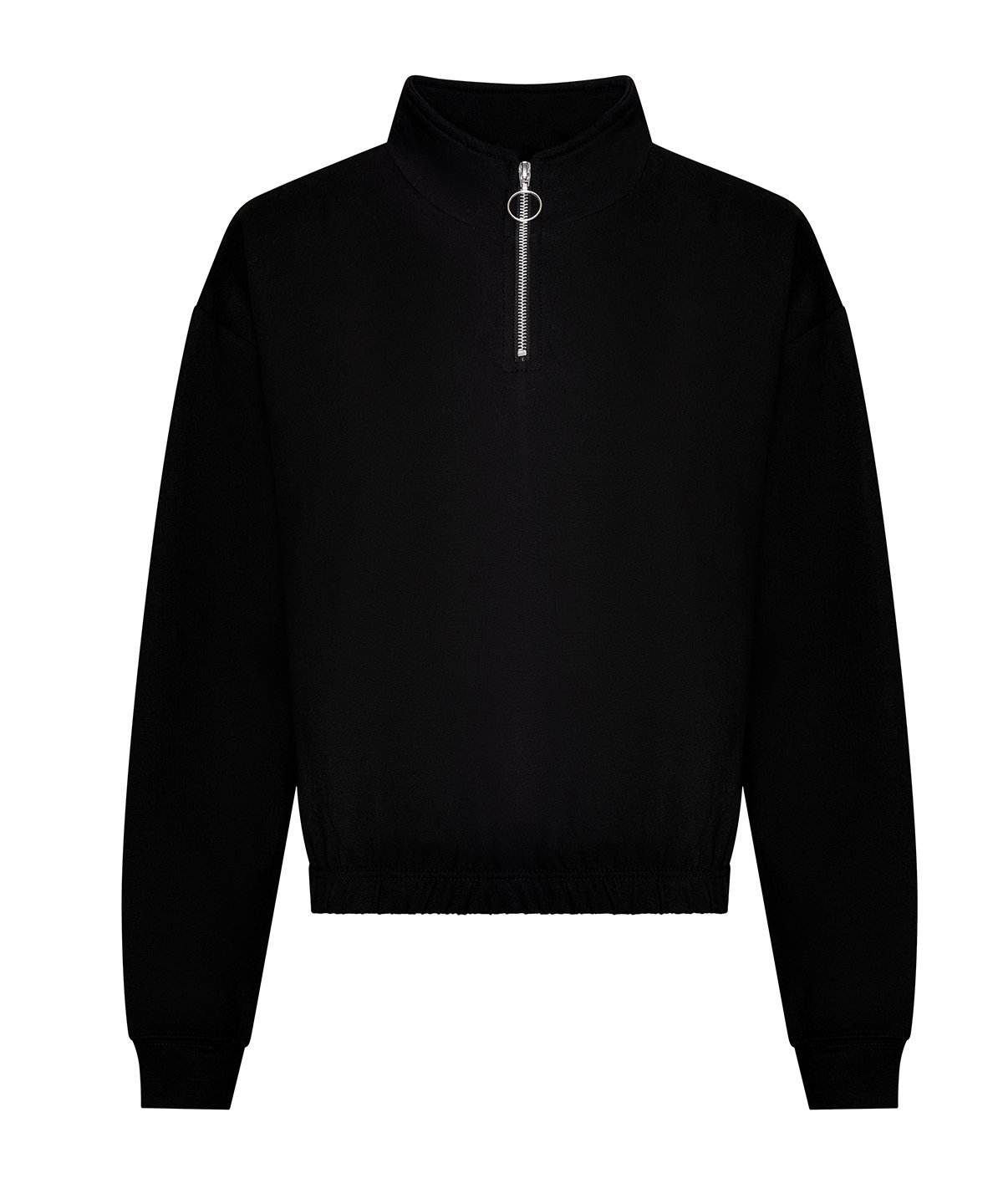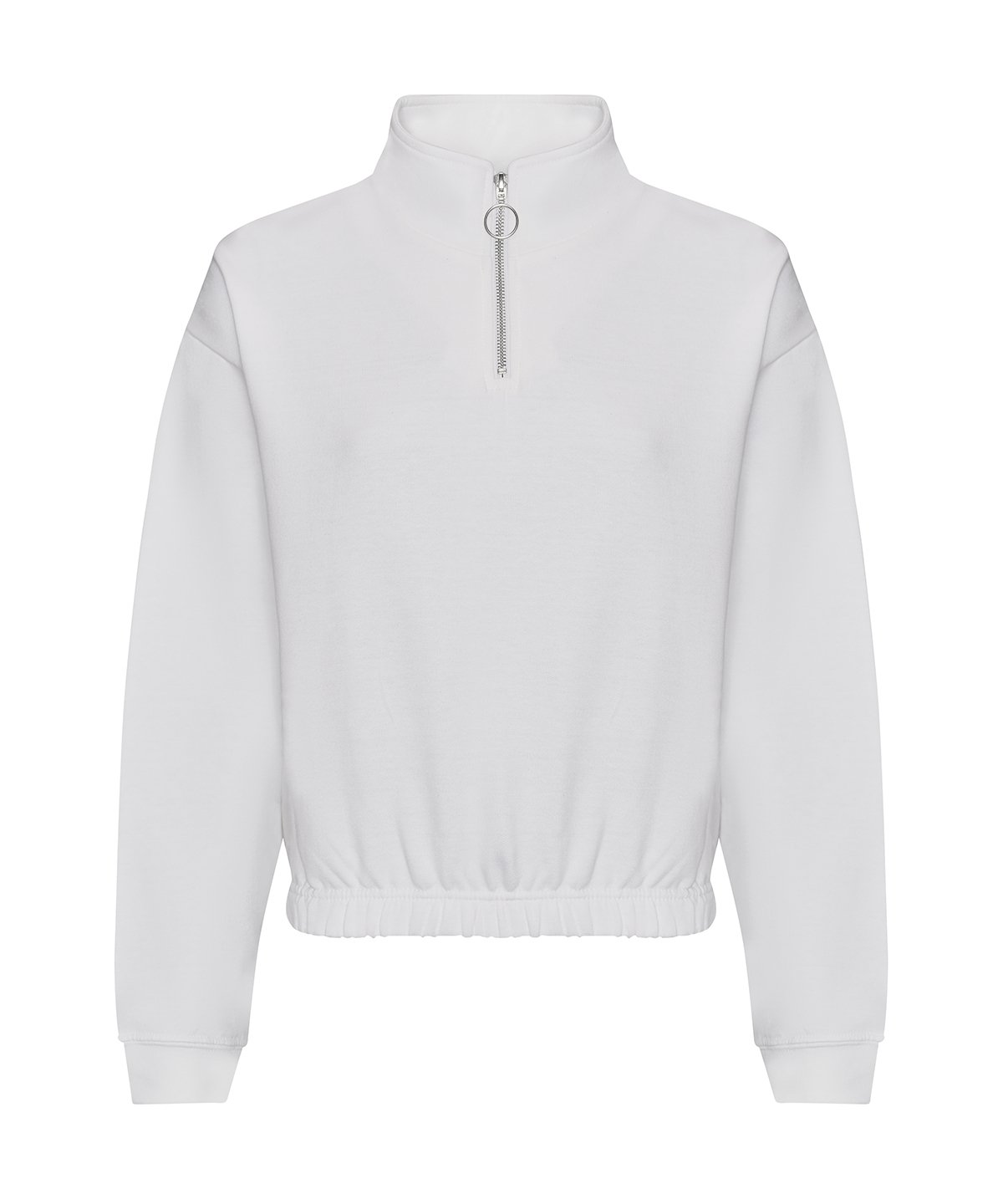 Women’s regular fit. Funnel Neck. Quarter zip fastening. Cropped style. Elasticated hem. Brushed Inner fleece. Ribbed cuffs. Soft cotton faced fabric creates ideal printing surface. Simple tear out label makes it perfect for rebranding.